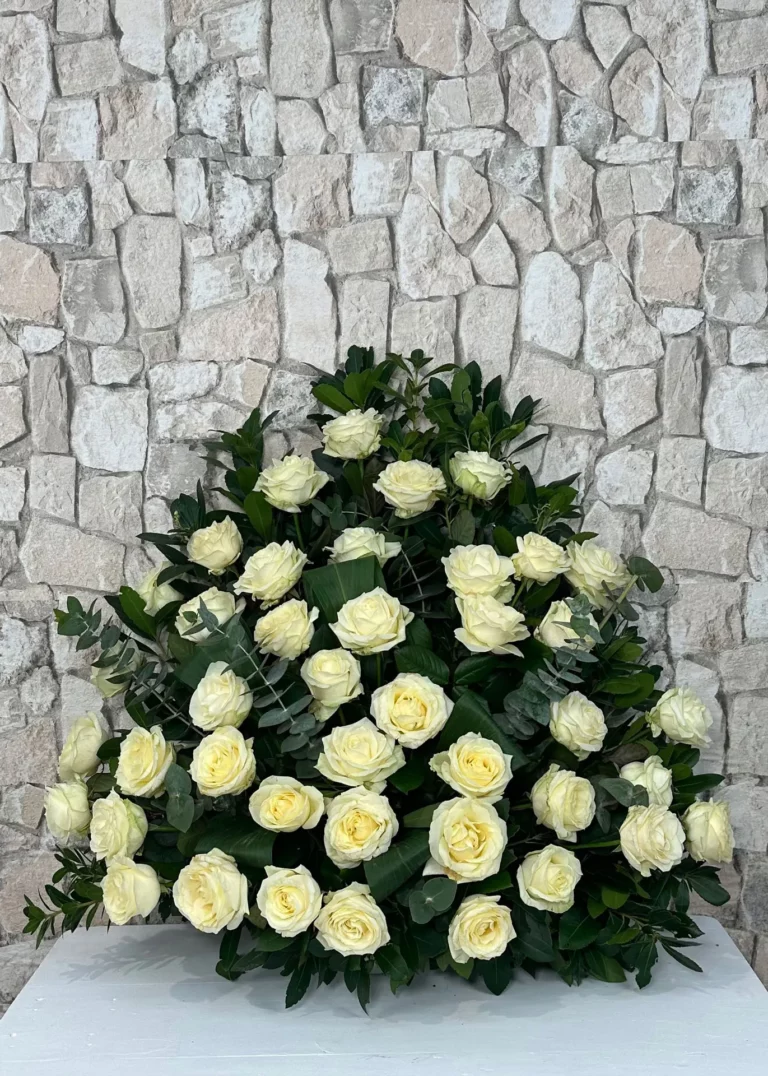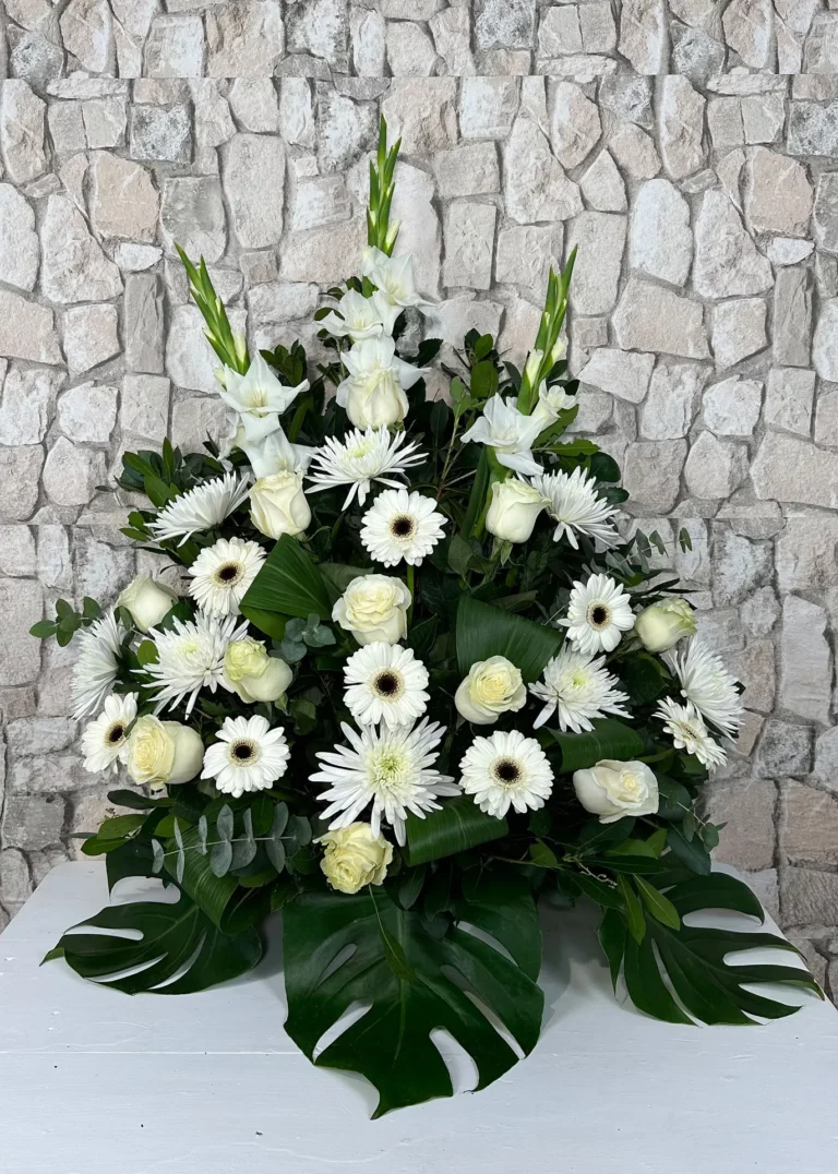 Empresa consolidada y líder en el sector del arte floral funerario. Contamos con un servicio urgente los 365 días y además, realizamos entregas en el tanatorio muy urgentes. Nuestro mejor aval son nuestros clientes, tal y como ellos confirman el plazo de entrega suele ser inferior a 2 horas. De este modo, usted no necesitará realizar ninguna compra de flores fúnebres en su llegada al tanatorio ni tener que estar haciendo largas esperas hasta que confeccionen su arreglo floral deseado. Dejándolo todo en nuestras manos, podrá dedicar todo su tiempo a acompañar a sus seres queridos. Todos nuestros productos se confeccionan con flores frescas y de la mayor calidad. Si se diese el caso de que no pudiésemos confeccionar el arreglo por cuestiones de temporalidad de las flores, las sustituiremos sin coste alguno por flores con el mismo color y calidad. Realizamos envíos de flores al tanatorio sin coste adicional en la dirección que nos facilite. Además, debe de tener en cuenta a la hora de solicitar su Centro funerario de flores Navafría de que podrá incluir su dedicatoria personalizada completamente gratis. Esta dedicatoria podemos incluirla bien en una cinta junto con el arreglo floral o de forma más íntima en una tarjeta, para reflejar la esencia de esa persona tan especial en el día de su despedida. Comprar su Centro funerario de flores Navafría en nuestra tienda supone hacerlo en una tienda E-Commerce 100% segura y que cuenta con el certificado SSL. Para nuestra empresa, tu seguridad y respeto en un día tan emotivo es la base para comprender nuestro trabajo.Productos relacionados